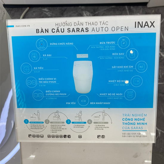 - Bồn cầu thông minh INAX AC-816VN (SARAS Light E) là dòng sản phẩm cao cấp được tích hợp nhiều tính năng hiện đại như tự động xả nước, rửa vệ sinh, và sưởi ấm bệ ngồi. Với thiết kế liền khối sang trọng cùng công nghệ tiên tiến từ Nhật Bản.